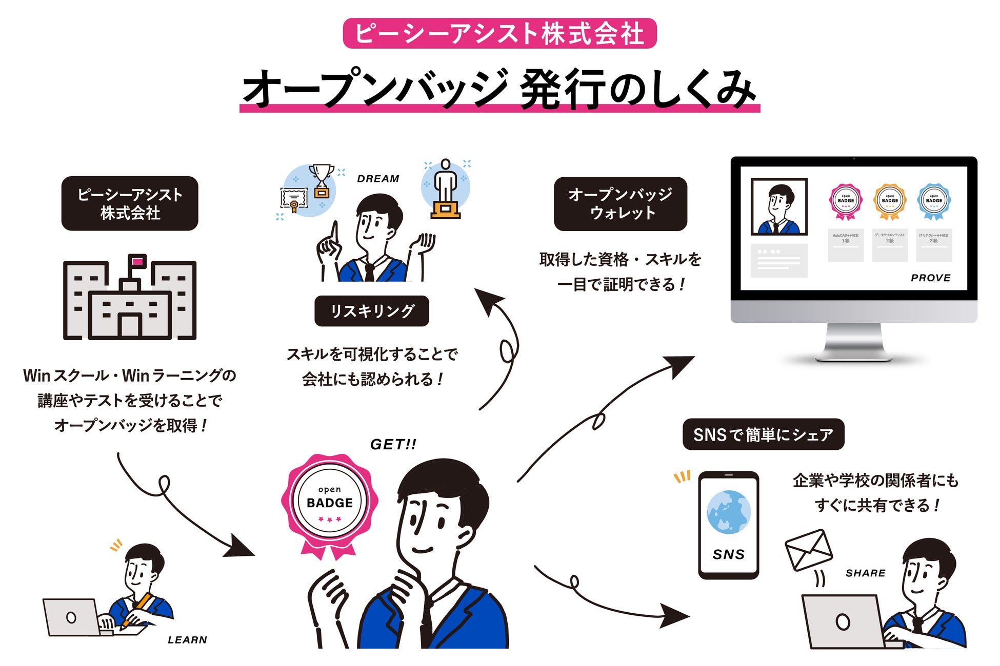 デジタル時代の成果の証明として、オープンバッジを活用した人材育成サービスを2023年8月1日より開始いたします。この新サービスでは、個々の学習成果やスキル習得をデジタルバッジとして認定・共有することで、受講生の知識・努力を社会全体で評価・認識する仕組みを提供します。ブロックチェーン技術を用いた信頼性の高いオープンバッジは、リスキリング・スキルアップを促進し、これにより個人と企業の競争力を強化します。